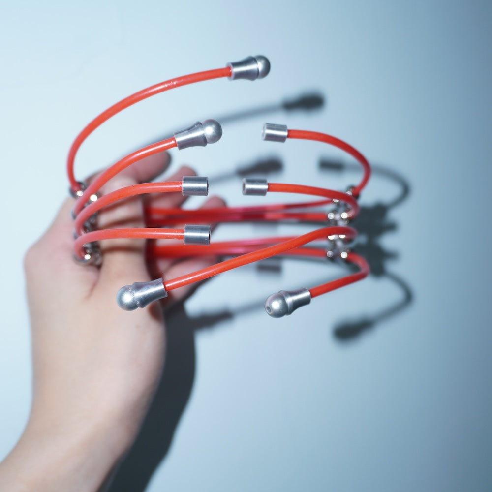 Materials: Flexible tubing, aluminum wire, circuit board, PLA custom-made components