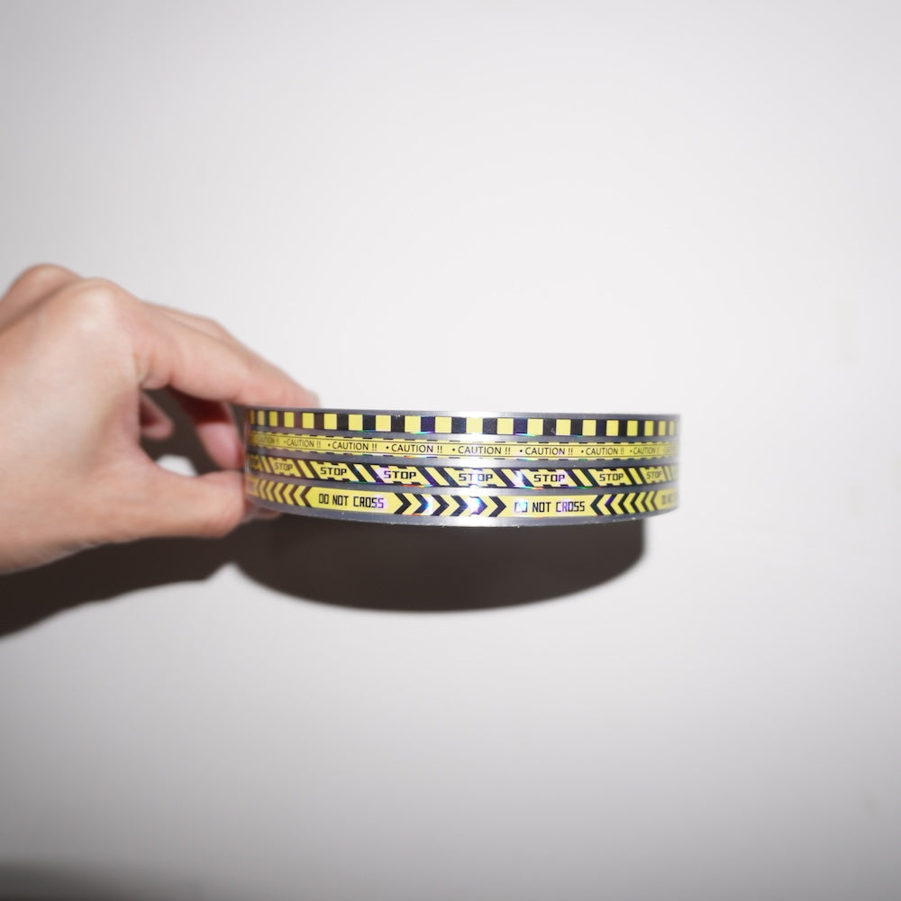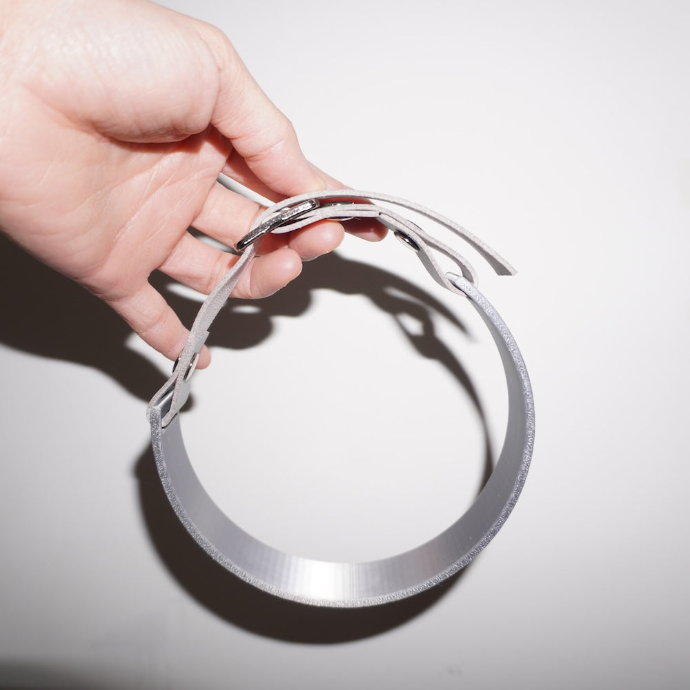 This collar design draws inspiration from futuristic caution tape elements. The surface caution tape is a waterproof sticker that has undergone reinforcement treatment. The 3D-printed edges feature a polished finish with minimal traces.